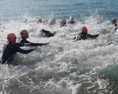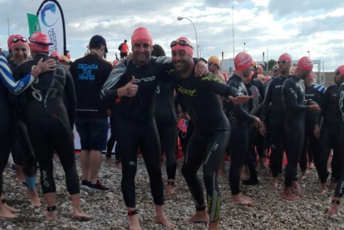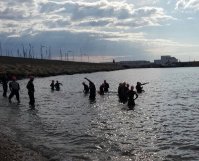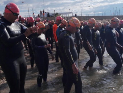 At 8,30 they have left the 50 members of the Crossing PRO (10,000m.) That would give twice around a buoyed by large red buoys circuit.